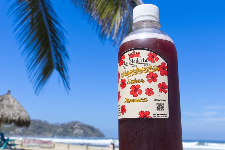 Kombucha es una bebida viva, la cual esta compuesta por, té, azúcar, agua y fermentada atreves de una scoby (sociedad de levaduras y enzimas viviendo en conjunto). Al fermentar crea probióticos, ácidos buenos para el sistema digestivo y Co2.