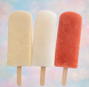 Son paletas a base de agua o leche de coco sin azúcar, endulzadas con Alulosa y Stevia.